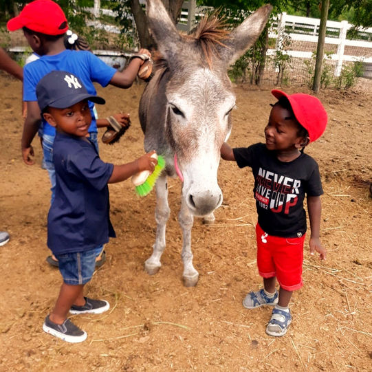 In December 2017, a generous donation of a much-needed wheelchair was provided to the Sanctuary. On December 30th 2017, the Sanctuary welcomed Donna Knauer, the first visitor to use the new wheelchair. Donna was able to utilize the cement path to brush and enjoy the donkeys. Since then, the Sanctuary has welcomed several individuals with physical limitations, including children, as well as families who can now use the path to push their toddlers in strollers.